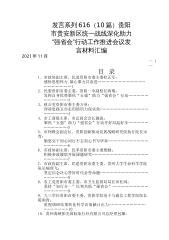 发言系列616(10篇)贵阳市贵安新区统一战线深化助力“强省会”行动工作推进会议发言材料汇编2021年11月—1—目录1.市政协副主席、民进贵阳市委主委杜正军:感悟思想伟力凝心聚力共奋进…………………………………………………12.民盟贵阳市委主委、贵阳一中副校长蒋骞:发挥自身优势聚焦“五强”助力“强省会”行动……………………………33.致公党贵阳市委主委方英:理清思路五步走用情用力保实效………………………………………………44.市工商联主席、市总商会会长施波:聚焦“五强”助力“强省会”行动开好局起好步……………………………55.市网联会副会长、贵阳创新驱动发展战略研究院执行院长宋青:勤思实干同...