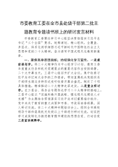 市委教育工委在全市县处级干部第二批主题教育专题读书班上的研讨发言材料