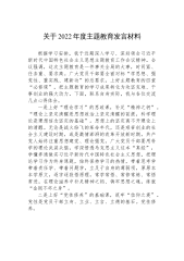 市委教育工委在全市县处级干部第二批主题教育专题读书班上的研讨发言材料市委教育工委理论学习中心组坚决贯彻落实习近平总书记“三个全面”要求,统筹谋划、精心组织,全覆盖、多层次、体系化深学细悟习近平新时代中国特色社会主义思想和党的二十大精神,奋力谱写中国式现代化教育新篇章。一、聚焦高举思想旗帜,持续强化学习宣传。一是提前谋划学。将二十大精神作为中心组学习计划、教育工委年度重点任务和机关党建要点的重要内容作出安排部署。二十大开幕当天,工委中心组召开扩大会议,集中收看习近平总书记向大会作的工作报告,带动直属机关党组织名干部师生通过多种形式收听收看开幕会盛况。制定了十项具体措施,精准推动二十大精神走深走实...