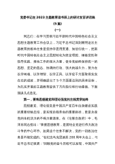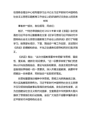 在部务会理论中心组专题学习总书记在习近平新时代中国特色社会主义思想主题教育工作会议上的讲话研讨交流会上的发言材料尊敬的**部长,各位领导,同志们:刚才,**同志带领我们对2023年第9期《求是》杂志发表的习近平总书记重要署名文章《在学习贯彻习近平新时代中国特色社会主义思想主题教育工作会议上的讲话》进行了专题学习。按照部长指示,下面,我结合**局工作实际,谈谈我对《讲话》的理解和体会,不当之处请各位领导和同志们批评指正。“‘《讲话》指出:这次主题教育要牢牢把握学思想、强党’”性、重实践、建新功的总要求。这一总要求体现了我们党坚持认识与实践相结合、理论与实际相联系、改造主观世界与改造客观世界相统一...