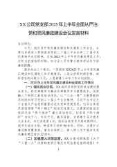 XX公司党支部2025年上半年全面从严治党和党风廉政建设会议发言材料