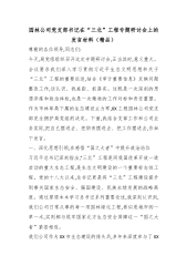 园林公司党支部书记在“三北”工程专题研讨会上的发言材料(精品)尊敬的各位领导,同志们:今天,局党组组织召开这次专题研讨会,正当其时,意义重大。会议要求我们深入学习贯彻习近平生态文明思想和关于“三北”工程的重要论述,结合《审计重要信息》反映问题整改工作,谈认识、找差距、抓落实。这既是一次深刻的思想淬炼和政治体检,也是一次精准的工作对标和责任重塑。作为市林草局下属的生态建设主力军,XX工程园林公司党支部完全拥护局党组的决定。下面,我结合支部工作和公司业务实际,把自己摆进去、把职责摆进去、把工作摆进去,作如下发言。一、深化思想引领,在感悟“国之大者”中提升政治站位习近平总书记深刻指出,“三北”工程是...