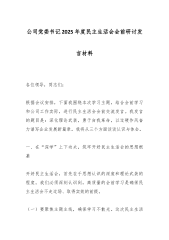 国企班子成员2025年民主生活会会前研讨发言材料同志们:根据安排,今天我们召开专题会议,为高质量开好2025年度民主生活会进行会前集中学习和思想动员。通过再次深入学习领会习近平总书记系列重要讲话和指示批示精神,我深受教育和启发。下面,我结合个人思想和工作实际,谈几点初步的学习体会和感悟,以便在后续的对照检查和相互批评中,能够更精准地查摆问题。一、深化思想理论武装筑牢自我革命根基思想是行动的先导,理论是实践的指南。通过系统学习,我深刻认识到,只有不断用党的创新理论武装头脑,才能在纷繁复杂的形势面前保持清醒,在艰巨繁重的任务面前保持定力。一是深刻领悟自我革命的重大意义。习近平总书记在《求是》杂志发...