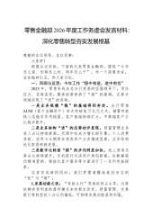 零售金融部2026年度工作务虚会发言材料:深化零售转型夯实发展根基尊敬的各位领导、各位同事:大家好!根据会议安排,下面我代表零售金融部,围绕“今年怎么看、形势怎么判、明年怎么干”,作一个简要发言,旨在抛砖引玉,供大家讨论。一、回顾与反思:今年工作“稳中有进,进中有忧”2025年,零售条线在总分行党委的坚强领导下,顶住压力、克难奋进,整体经营保持了“稳”的基调,在部分领域实现了“进”的突破。一是业务规模“稳”的基础得到夯实。全行零售AUM(客户金融资产)首次突破X万亿元大关,储蓄存款核心压舱石作用稳固。客户基础持续扩大,中高端客户占比稳步提升。二是业务结构“进”的态势初步显现。财富管理业务收入占...