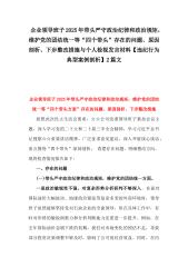 企业领导班子2025年带头严守政治纪律和政治规矩,维护党的团结统一等“四个带头”存在的问题、原因剖析、下步整改措施与个人检视发言材料【违纪行为典型案例剖析】2篇文