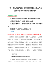 “四个方面”2025年带头履行全面从严治党政治责任等检查发言材料、实施方案【8份】与2025年党风廉政建设专题学习辅导党课讲稿15篇文2025年专题生活会对照带头履行全面从严治党政治责任等“四个方面”个人对照检查发言材料“四个带头方面”(一)带头严守政治纪律和政治规矩,维护党的团结统一方面(二)带头增强党性、严守纪律、砥砺作风方面(三)带头在遵规守纪、清正廉洁前提下勇于担责、敢于创新方面(四)带头履行全面从严治党政治责任方面【正文】按照2024年度民主生活会部署要求,本人近期通过个人自学和集体学习认真学习了《中国共产党纪律处分条例》等党内法规,认真学习习近平总书记系列重要讲话精神,对上级党委指...