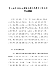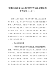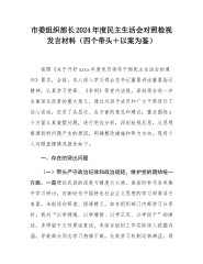 市委组织部长2024年度民主SH会对照检视发言材料(四个带头+以案为鉴)