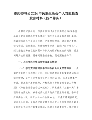 市委组织部长2024年度民主生活会对照检视发言材料(四个带头+以案为鉴)按照《关于开好xxxx年度党员领导干部民主生活会的通知》要求,会前,本人深入学习领会总书记重要讲话重要指示精神,认真学习党章、《条例》等党内法规,深刻领会进一步全面深化改革的重大意义,通过与班子成员和广大干部进行了谈心谈话,征求了各层次、各方面的意见和建议,重点围绕x个方面认真查摆问题,进行党性分析,深刻检视反思,从思想根源剖析问题产生的原因,明确整改措施和努力方向。现将个人对照查摆情况报告如下。一、存在的突出问题(一)带头严守政治纪律和政治规矩,维护党的团结统一方面。一是理论武装的深度与精度欠火候。虽按时参与各类集中学习...