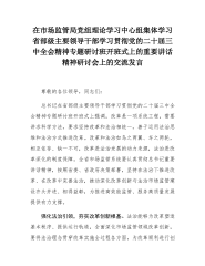 在市场监管局党组理论学习中心组集体学习省部级主要领导干部学习贯彻党的二十届三中全会精神专题研讨班开班式上的重要讲话精神研讨会上的交流发言