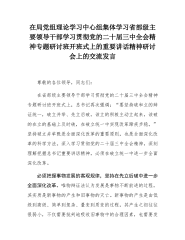 在市场监管局党组理论学习中心组集体学习省部级主要领导干部学习贯彻党的二十届三中全会精神专题研讨班开班式上的重要讲话精神研讨会上的交流发言尊敬的各位领导,同志们:总书记在省部级主要领导干部学习贯彻党的二十届三中全会精神专题研讨班开班式上强调,改革是一项系统工程,需要讲求科学方法,要求坚持改革和法治相统一,善于运用法治思维和法治方式推进改革。改革和法治如鸟之两翼、车之两轮,相互依存、缺一不可,改革是法治发展的动力来源,法治是改革深化的制度保障。全省市场监管系统要认真贯彻总书记重要讲话精神,按照省委、省政府决策部署,坚持在法治下推进改革、在改革中完善法治,推动深化改革创新与法治市场监管建设齐头并进、...