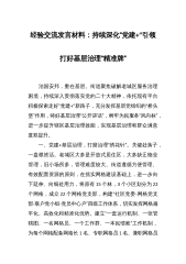 经验交流发言材料:持续深化“党建+”引领打好基层治理“精准牌”