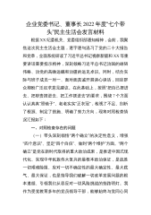 企业党委书记、董事长2022年度“七个带头”民主生活会发言材料