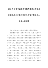 2021年纪委书记在学习教育座谈会发言材料稿 与机关支部召开学习教育专题组织生活会主持词稿
