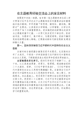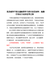 党员领导干部主题教育学习研讨发言材料:集聚行动合力走好赶考之路“开展主题教育是今年党的建设的重大任务。各级党组织要坚决贯彻落实党中央的工作部署,教育引导党员、干部在以学铸魂、以学增智、以学正风、以学促干上下功夫见实效。”近日,习近平总书记在视察广东时就开展主题教育发表重要讲话、作出重要指示,为推动主题教育取得扎实成效指明了方向、注入了强劲动力。深入开展学习贯彻xxx新时代中国特色社会主义思想主题教育,是深入推进新时代党的建设新的伟大工程的重大部署是我们党加强自身建设的重要经验,广大党员干部要凝聚思想共识、集聚行动合力,将主题教育“抓在经常,融入日常”,在主题教育中“强筋壮骨”,奋力走好新时代赶...