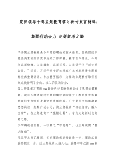 党员领导干部主题教育学习研讨发言材料:集聚行动合力 走好赶考之路