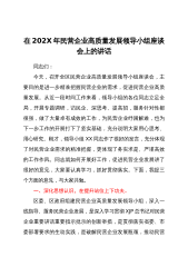 在202X年民营企业高质量发展领导小组座谈会上的讲话同志们:今天,召开全区民营企业高质量发展领导小组座谈会,主要目的是进一步精准把握民营企业的需求,促进民营企业高质量发展。从近一段时间工作来看,领导小组的各位同志立足全局,开展专题调研,访民企、深思考、提高招,服务针对性都很强,做了大量卓有成效的工作,为民营企业纾困解难,也为下一步工作的开展打下了坚实基础,充分说明大家用心思考、用心研究。刚才,领导小组XX同志作了很好的发言,充分体现了对民营企业需求的精准把握,更体现了务实求是、严谨高效的工作作风。同志就如何开展好工作,促进民营企业发展讲了很好的意见,大家要认真学习,抓好贯彻落实。下面,我提三个...