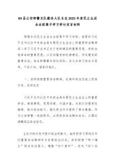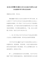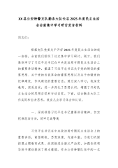 XX县公安特警支队勤务大队长在2025年度民主生活会会前集中学习研讨发言材料 根据本次民主生活会会前集中学习安排,我紧扣习近平总书记在中央政治局专题民主生活会上的重要讲话精神深入学习习近平总书记关于党的建设的重要思想、党的自我革命的重要思想,以及加强党的纪律建设、作风建设的重要论述,结合特警勤务岗位实际,谈几点学习体会与思考,不妥之处,请批评指正。 一、深学细悟重要讲话精神,在铸牢政治忠诚上把准方向、走深走实 习近平总书记在中央政治局专题民主生活会上的重要讲话,高屋建瓴、思想深邃、内涵丰富,为我们加强党性锤炼、提升政治能力、强化担当作为提供了根本遵循。作为公安特警一线指挥员,必须把讲政治...