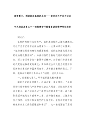 深学细悟强根脉,笃行实干谱新篇——学习习近平总书记在中央政治局第二十一次集体学习时重要讲话精神研讨交流发言同志们:习近平总书记在中央政治局第二十一次集体学习时的重要讲话,立意高远、内涵丰富、思想深邃,深刻阐述了坚持和贯彻新时代党的组织路线的极端重要性,科学回答了一系列事关党的建设全局的根本性、战略性问题,为我们指明了当前和今后一个时期党的组织建设的努力方向和实践路径。认真学习领会讲话精神,对于我们深刻把握组织建设规律,不断提高党的执政能力和领导水平,确保党始终成为中国特色社会主义事业的坚强领导核心,具有重大的现实意义和深远的历史意义。我们必须以高度的政治自觉,深刻理解新时代党的组织路线的核心要...