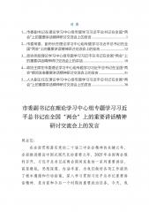 目录市委副书记在理论学习中心组专题学习习近平总书记在全国“两会”上的重要讲话精神研讨交流会上的发言同志们:在全面贯彻落实党的二十届三中全会精神的关键之年、全面推进建设中国式现代化的重要之年,2025年全国两会胜利召开。习近平总书记在两会期间发表的一系列重要讲话,高屋建瓴、思想深邃、内涵丰富,为我们做好各项工作提供了根本遵循和行动指南。深入学习贯彻习近平总书记重要讲话精神,是当前和今后一个时期的重要政治任务。今天,我们召开理论学习中心组专题学习研讨会,就是要深刻领会总书记讲话的精神实质,结合☆☆实际,研究贯彻落实举措,切实把思想和行动统一到总书记重要讲话精神和党中央决策部署上来。借此机会,我谈几...