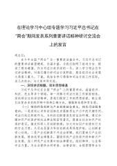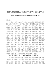在局理论学习中心组专题学习习近平总书记在2025年全国两会上的重要讲话精神研讨交流会上的发言同志们:习近平总书记在2025年全国“两会”上的重要讲话,高屋建瓴、思想深邃,为我们指明了前进方向、提供了根本遵循。对于我们司法行政系统而言,深入学习领会这些重要讲话精神,是当前和今后一个时期的重要政治任务。这不仅关乎我们对国家发展大局的准确把握,更关系到我们如何立足本职,为推动经济社会高质量发展贡献司法力量。下面,结合我局工作实际,我谈几点体会。一、深悟思想伟力,筑牢政治根基思想是行动的先导,只有深刻领悟习近平总书记在全国“两会”上重要讲话精神的内涵,才能在工作中找准方向、坚定信念。我们必须从政治高度...