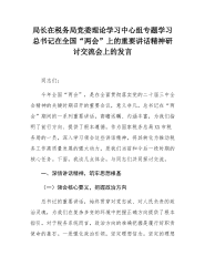 审计局副书记、副局长在理论学习中心组专题学习总书记在全国“两会”上的重要讲话精神研讨交流会上的发言同志们:在全面贯彻落实党的二十届三中全会精神的开局之年,全国“两会”胜利召开,意义非凡。总书记在“两会”期间的一系列重要讲话,为我们指明了前行方向,提供了根本遵循。作为XX市审计局的一员,我们要深刻领会讲话精神,紧密结合审计工作职能,切实将思想和行动统一到党中央决策部署上来,充分发挥审计在保障经济社会高质量发展中的重要作用。下面,我谈几点体会,与大家共同交流探讨。一、深刻领会,筑牢思想根基思想是行动的先导,深刻领会总书记在全国“两会”上的重要讲话精神,是我们做好各项工作的前提。我们要从多维度、深层...