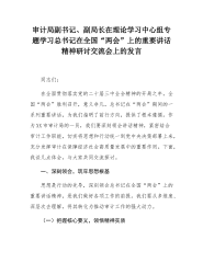 审计局副书记、副局长在理论学习中心组专题学习总书记在全国“两会”上的重要讲话精神研讨交流会上的发言
