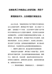在财政局工作推进会上的讲话稿:用实干展现财政作为,以实绩践行财政担当
