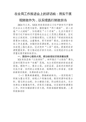 在全局工作推进会上的讲话稿:用实干展现财政作为,以实绩践行财政担当