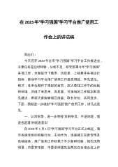 在2023年“学习强国”学习平台推广使用工作会上的讲话稿