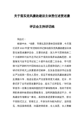 关于落实党风廉政建设主体责任述责述廉评议会主持讲话稿 同志们: 根据中央、*省委、市委以及区委的安排部署,今天我们召开2022年度*区党组织书记推动落实党风廉政建设主体责任述责述廉评议会,主要目的是:深入学习贯彻党的二十大精神和习近平总书记关于党的自我革命战略思想,全面落实习近平总书记在二十届中央纪委二次全会、学习贯彻习近平新时代中国特色社会主义思想和党的二十大精神研讨班开班式上的重要讲话精神,压实各党组织书记全面从严治党第一责任人责任,坚定不移推进党风廉政建设和反腐败斗争,推进全面从严治党取得更大成效。近日,市委召开了全市述责述廉评议会,提出了点评意见:“对行政审批等一些重点领域风险防控...