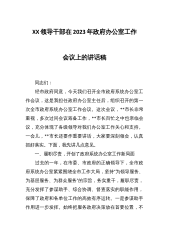 XX领导干部在2023年政府办公室工作会议上的讲话稿
