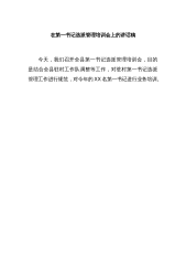 在第一书记选派管理培训会上的讲话稿今天,我们召开全县第一书记选派管理培训会,目的是结合全县驻村工作队调整等工作,对驻村第一书记选派管理工作进行规范,对今年的XX名第一书记进行业务培训。在开展驻村工作中,绝大部分第一书记角色转变快、工作对接准、帮扶举措实,在全县决胜脱贫攻坚的关键时期起到了至关重要的作用,交出了满意答卷。归纳起来有几个方面:一是村级发展显著提速。第一书记广泛发挥自身资源优势,积极协调引进村级发展项目,培育种养殖大户,有效促进了派驻村级集体经济发展,带动了村民增收致富。二是基层党建显著加强。农村基层党建一直是薄弱环节,有的村支部书记对党建重视不够,更多的支部书记是不会抓、抓不好。第...