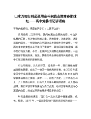 山水万程行则必至用奋斗实践点燃青春那抹红——高中党委书记讲话稿尊敬的老师们、亲爱的同学们:大家早上好!日月经天,江河行地。其间有黑白交替的光芒,有山川纵横的辽阔,有万物生长的力量。天地迎春,万象更新。沐浴新春的阳光,一些朝向内心的期许会在琐细生活中破壁,一些面向未来的梦想会从平淡日子里拔节。愿你回首没有遗憾,愿你前行饱含力量。今天,全体师生又相聚在美丽的田园,一起迎接新学期的到来。首先,我谨代表全体校领导向老师们、同学们致以最美好的新春祝福。行之苟有恒,久久自芬芳。过去的一年,我们勇敢地穿越疫情的阴霾,交出了一份又一份优秀的答卷。在2022年度全国中学生英语能力测评全国总决赛上,我校共有346...