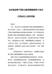 在纪检监察干部队伍教育整顿领导小组办公室会议上的讲话稿 同志们: 今天,我们召开*县纪检监察干部队伍教育整顿领导小组办公室第一次会议,主要任务是贯彻落实全县纪检监察干部队伍教育整顿动员部署会议精神和《关于开展全县纪检监察干部队伍教育整顿的实施意见》要求,安排部署下阶段工作。参加今天会议的有:县纪委分管日常工作的副书记、县监委副主任*同志,教育整顿领导小组副组长、办公室主任**同志,各工作组组长、副组长和全体成员。经县委同意,根据领导小组办公室办公室研究,下面,我讲三点意见。 一、提高政治站位,强化责任担当,全面履行纪检监察干部队伍教育整顿领导小组办公室职责 领导小组办公室是教育整顿的具...