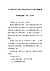 学习贯彻习近平新时代中国特色社会主义思想主题教育调研成果交流会主持词、讲话稿尊敬的组长,各位领导、同志们:根据主题教育工作安排,今天下午我们召开学校学习贯彻习近平新时代中国特色社会主义思想主题教育调研成果交流会。主题教育开展以来,省委主题教育督导组一直高度关注和大力支持我校工作。出席今天会议的还有,让我们以热烈的掌声对他们的到来表示诚挚的欢迎和衷心的感谢。参加今天会议的还有,学校领导班子成员,。会议共有三项议程:一是学校领导班子成员作调研成果交流发言二是我对深化调查研究、抓好成果转化提出工作要求;三是督导组同志讲话。首先进行第一项议程,学校领导班子成员进行调研成果交流。发言顺序依次为:。(交流...