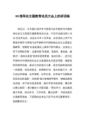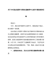 关于XX国企党委学习贯彻主题教育中心组学习暨党课讲话稿同志们:今天,我们召开党委中心组学习,我也借这个机会,给大家讲一堂党课。在全党深入开展学习贯彻习近平新时代中国特色社会主义思想主题教育,是党中央为全面贯彻党的XX大精神、动员全党同志为完成党的中心任务而团结奋斗所作的重大部署,是深入推进新时代党的建设新的伟大工程的重大部署。4月3日,中央召开了主题教育工作会议,习近平总书记出席会议并发表重要讲话。下面,我谈一谈自己对主题教育的认识和体会。一、提高政治站位,充分认识开展主题教育的重大意义开展这次主题教育,是统一全党思想意志行动、始终保持党的强大凝聚力、战斗力的必然要求,是推动全党积极担当作为、...