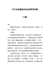 (3篇)关于全民健身运动会领导讲话稿