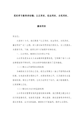 2024年在党纪学习教育工作、在全市、在全县党纪学习教育动员部署会上的讲话稿【三篇】汇编【目录】2024年在党纪学习教育工作动员部署会上的讲话2024年在全市党纪学习教育动员部署会上的讲话2024年在全县党纪学习教育动员部署会上的讲话2024年在党纪学习教育工作动员部署会上的讲话同志们:今天,我们在这里召开x党纪学习教育工作动员部署会,目的是深入贯彻落实习近平总书记关于党纪学习教育的重要讲话和重要指示精神一级中央关于在全党开展党纪学习教育的决策部署,推动x纪律教育工作走深走实,确保广大党员干部严守党的纪律规矩,为推进我单位高质量发展提供坚强纪律保障。一、提高政治站位,深刻认识党纪学习教育的重要...