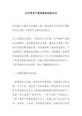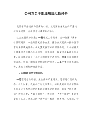 公司党员干部违规违纪检讨书我怀着万分愧疚和沉痛的心情,就近期自身发生的严重违纪违法问题,向组织作出最深刻的检讨。这三起错误分别是:一是违反工作纪律,在**集团下属单位任职期间,未经集团党委会决策,擅自决定更换一批价值不菲的房租设施设备;在处置更换下来的旧设备时,又未按规定上报集团总经理办公会研究,违规操作,致使旧设备被低价处置,给国家造成了十几万元的直接经济损失二是违反国家法律法规,实施了酒后驾驶机动车的行为。三是严重违反生活纪律,发生了嫖娼的违法行为。一、问题根源的深刻剖析一是理想信念动摇,党性修养严重滑坡。思想是行动的先导。长久以来,我放松了对政治理论,特别是对习近平新时代中国特色社会主义...