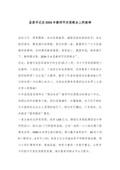 在第40个教师节庆祝大会上的讲话各位老师、同志们:大家上午好!年年春华秋实,岁岁桃李芬芳。在这收获成果又播种希望的金秋时节,我们欢聚一堂,隆重庆祝第40个教师节,表扬命名先进集体、先进教育管理者和优秀教学能手,引导动员全县上下进一步凝聚思想共识、汇聚强大力量,奋力推动教育事业高质量发展。首先,我代表县委、县人大、县政府、县政协,向广大教师和教育工作者致以节日的祝福和诚挚的问候!向受到表扬命名的先进集体和先进个人表示热烈的祝贺!向长期以来关心和支持X教育事业发展的社会各界人士表示衷心的感谢!教育兴则国家兴,教育强则国家强。近年来,县委、县政府深入贯彻习近平总书记关于教育工作重要论述,认真落实党的...