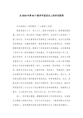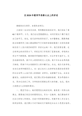 2024年教师节庆祝大会优秀教师代表发言尊敬的各位领导,各位老师:大家好!金色的九月,丹桂飘香,硕果累累。在这个满载收获和喜悦的初秋时节,我们即将迎来属于我们的节日——第四十个教师节。在这样一个特别的日子里,作为教师代表发言,我感到十分荣幸,首先感谢教育局党组和学校给我提供了一个宝贵机会,还要要感谢我的学生们,是你们的纯真与努力,让我的教学生涯充满了意义与色彩。能借此机会,与大家共同分享一下教学工作中的收获和感悟。一、热爱是教育的起点,引领我们在教育的道路上扬帆起航。教育是国之大计,党之大业。回望历史长河,我们不难发现,每一次文明的璀璨绽放,每一轮社会的飞跃进步,皆深深镌刻着教育的烙印。从古代...