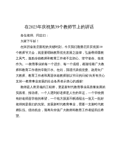 在Xx县名师工作坊主持人和名师培养对象庆祝第39个教师节座谈会上的讲话各位老师、同志们:大家好!在第39个教师节即将到来之际,有机会同各位名师见面,并听取大家的心声,我感到十分高兴。在此之前我认真看了X县教育局微信公众号推送的“坊主风采”和“名师风采”专题报道,刚才又听了大家的发言,我深受鼓舞和启发,对大家充满信心和期待。你们是学为人师、爱岗敬业勇于担当、无私奉献的先进典型,你们在平凡的岗位上绽放着绚烂的光彩,在育人的实践中收获着别样的幸福,值得全县广大教师学习。在此,我代表县委教育工委、县教育局向你们,并通过你们向全县教师致以节日的问候和美好的祝愿!对你们为教育事业的付出表示衷心的感谢和崇高...