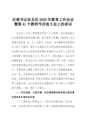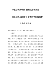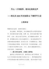 牵着小手赴新程以爱为灯引成长——一年级班主任在第41个教师节庆祝暨表彰大会上的讲话尊敬的各位领导、亲爱的同仁们、各位家长朋友:大家好!金秋九月,风染桂香,在这满含感恩与温暖的季节里,我们欢聚一堂,共同庆祝第41个教师节。作为一名一年级班主任,今天能站在这里发言,我的心中满是忐忑与感动——忐忑于自己只是千万幼教、小教工作者中最普通的一员,感动于这份“牵着小手陪成长”的事业,总能收获最纯粹的温暖。接下来,我想从三个与“小不点”们相关的故事里,和大家分享这份职业的初心与热爱。一、以“耐心”拆封成长,做孩子的“第一块拼图”一年级的孩子,像刚拆封的“小礼物”——带着幼儿园的稚嫩,揣着对小学的好奇,也藏着...