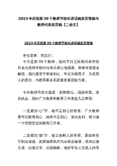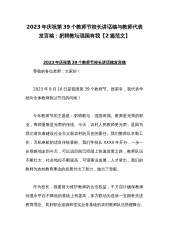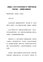 2023年庆祝教师节校长发言稿与庆祝第39个教师节教师代表发言稿:躬耕教坛强国有我(两篇文)