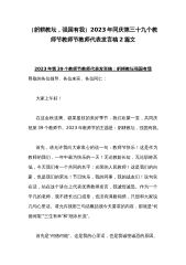 2023年庆祝教师节校长讲话稿发言稿与庆祝第39个教师节教师代表发言稿:躬耕教坛强国有我【2篇文】