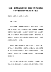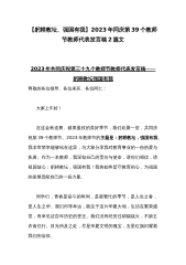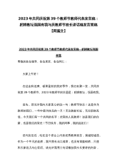 2023年共同庆祝第39个教师节教师代表发言稿:躬耕教坛强国有我与庆教师节校长讲话稿发言简稿【两篇文】