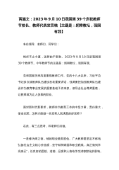 2023年庆祝教师节校长讲话稿发言稿与共同庆祝第39个教师节教师代表发言稿:躬耕教坛强国有我【两篇文】