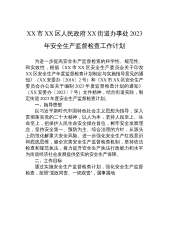 XX市XX区人民政府XX街道办事处2023年安全生产监督检查工作计划