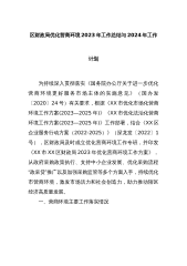 区财政局优化营商环境2023年工作总结与2024年工作计划