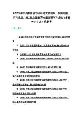 2023年主题教育专题党课讲稿、动员大会的讲话稿、专题内容学习计划学习安排、第二批主题教育专题研讨发言材料、学习心得、实施方案【多篇】供参考【目录】2023年主题教育专题党课讲稿4040字范文:新思想指引新实践新作为开启新征程在2023年第二批主题教育动员大会的讲话稿1580字范文2023年主题教育专题内容学习计划学习安排4630字范文2023年主题教育专题内容学习计划学习安排1690字范文2023年主题教育专题内容学习计划学习安排4390字范文2023年第二批主题教育专题研讨发言材料1240字范文2023年推动第二批主题教育学习心得体会感想1240字范文2023年法院党员干部...